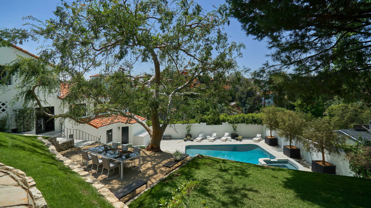 Het huis in Spaanse stijl van 4.000 vierkante meter heeft drie slaapkamers en vier badkamers, verdeeld over twee verdiepingen. De eengezinswoning werd gebouwd in 1927 op een dubbele kavel van in totaal meer dan 11.600 vierkante meter, volgens de website waar het huis wordt aangeboden.